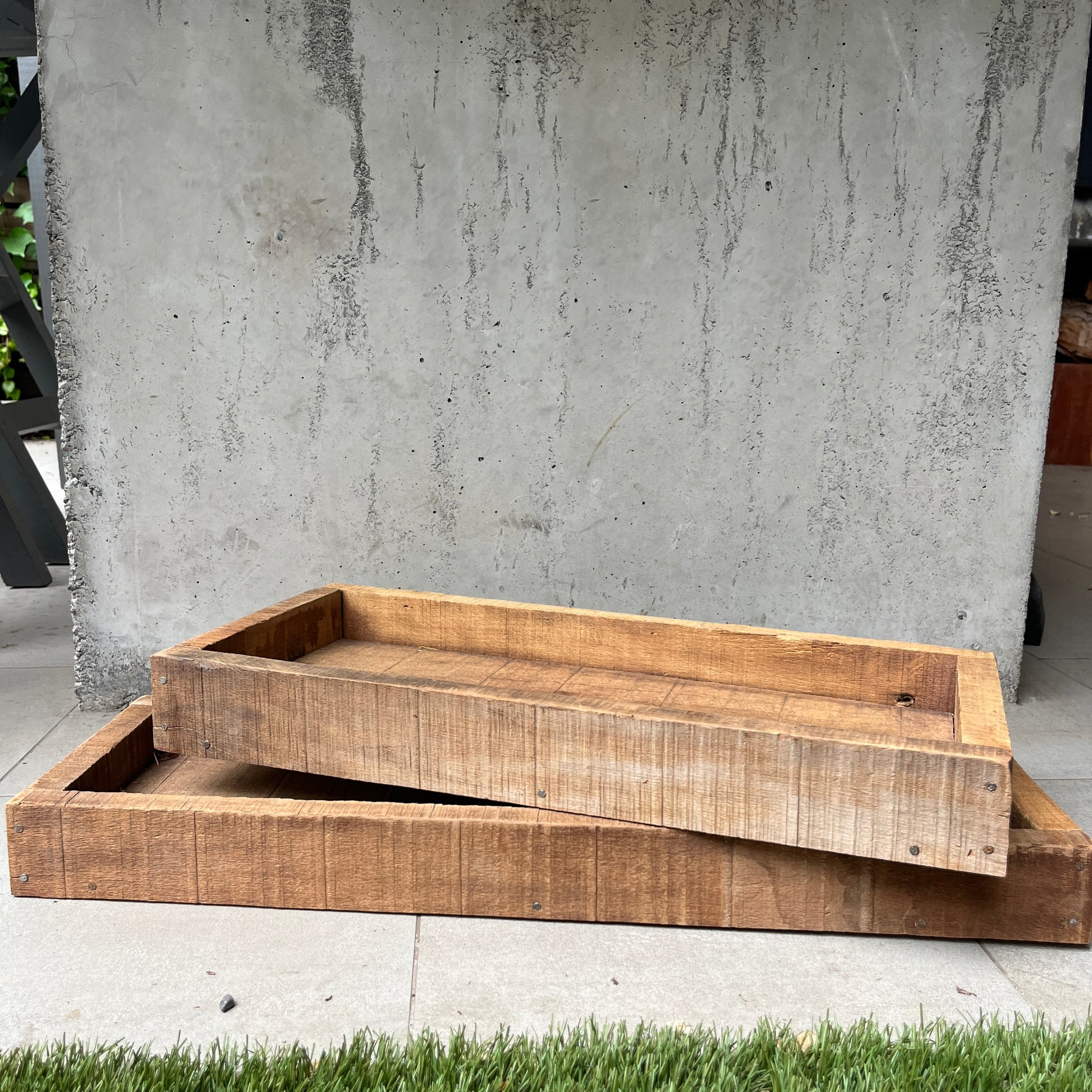Bandeja rústica de madera de demolición, ideal para centros de mesa, tablas de aperitivo, etc